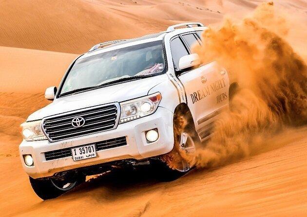 This Tour Includes Pick & Drop in a Private Car From Your Location Max 6 Person Per Car. Red Sand Dune Bashing, Sand Boarding, Camel Ride, Belly Dance, Tanoura and Fire Show.